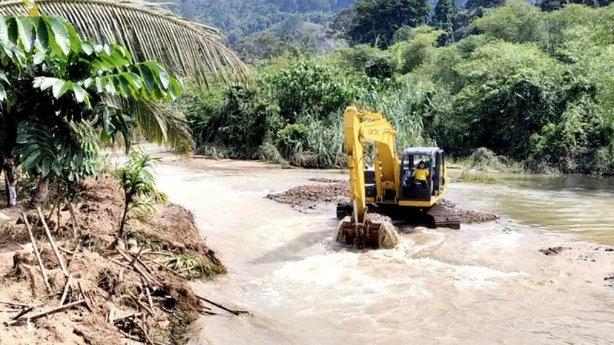 Dinas PUPR Rohul melakukan kegiatan normalisasi di sejumlah titik aliran Sei Kijang Desa Cipang Kiri Hulu, Kecamatan Rokan IV Koto, Jumat (3/4/2026).(Dinas PUPR Rohul untuk Riaupos.co)PASIRPENGARAIAN (RIAUPOS.CO) - Dinas Pekerjaan Umum dan Penataan Ruang (PUPR) Kabupaten Rokan Hulu (Rohul) gerak cepat menindaklanjuti instruksi Bupati Anton untuk melakukan langkah konkret dalam mengantisipasi bencana banjir yang kerap melanda Desa Cipang Kiri Hulu, Kecamatan Rokan IV Koto.Dibuktikan, dengan melaksanakan kegiatan normalisasi Sungai (Sei) Kijang sebagai langkah strategis dalam upaya penanggulangan dan pengurangan risiko bencana banjir yang selama ini sering merendam permukiman warga saat melakukan peninjauan di lapangan pekan lalu, guna mengurangi dampak luapan air sungai saat curah hujan tinggi.''Sesuai instruksi Pak Bupati Rohul, pascapeninjauan banjir di Desa Cipang Kiri Hulu pekan lalu. Kami dari Dinas PUPR tengah melakukan kegiatan normalisasi di aliran Sei Kijang, ini sebagai bentuk kehadiran pemerintah daerah dalam menjawab keluhan masyarakat yang selama ini rumahnya kerap terdampak banjir saat intensitas curah hujan tinggi,'' ungkap Plt Kepala Dinas PUPR Rohul H Zulfikri ST menjawab Riaupos.co, Jumat (3/4/2026) siang, terkait upaya penanggulangan pengurangan dampak bencana banjir di Desa Cipang Kiri Hulu, Kecamatan Rokan IV Koto.